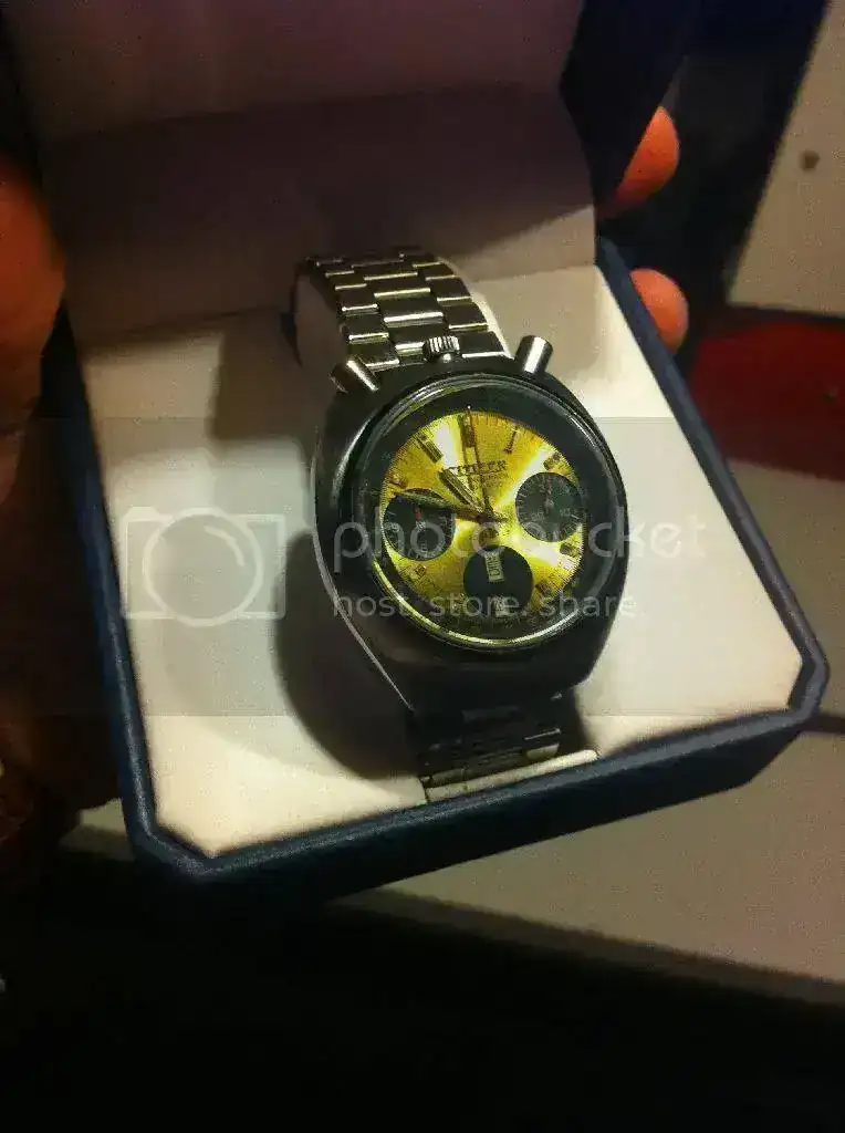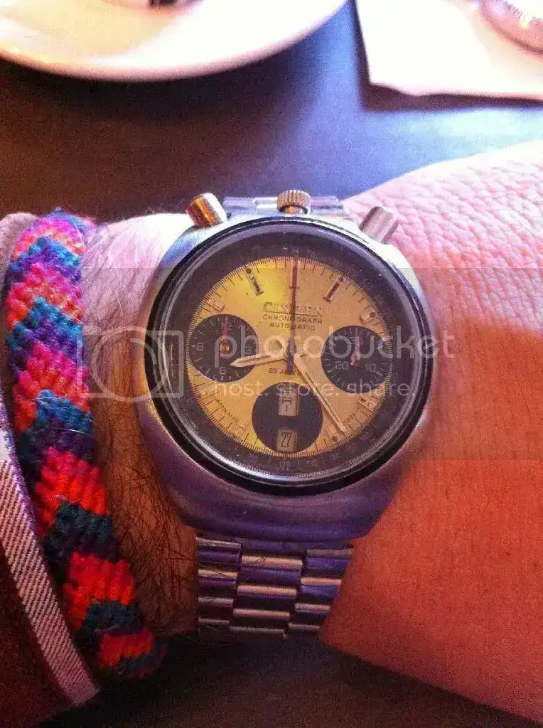 Como sabéis se trata de un crono japonés de los setenta, de dimensiones aproximadas 38x42 y que resetea a cero sin problemas. El brazalete es original y el estado estético es bueno teniendo en cuenta los añitos que tiene. El precio, con envío incluido serían 220€. Vosotros proponed, que yo contestaré todos los privados.