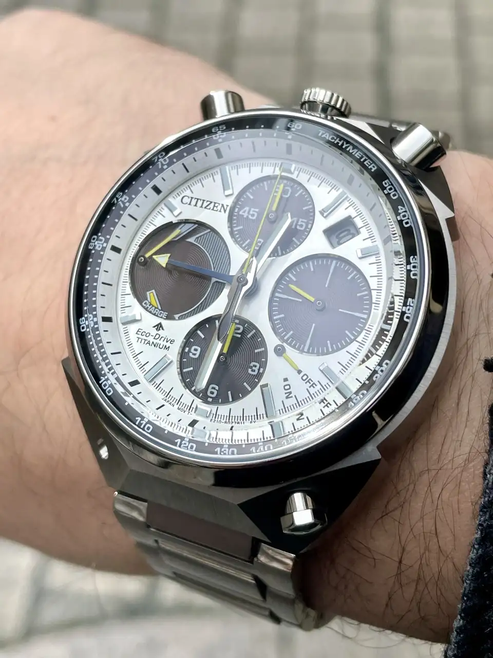 Gracias.La versión tope de gama es más grande que las que se muestran aquí, ecodrive , titanio, muy legible y con alarma aparte de cronómetro obvio ✌🏻