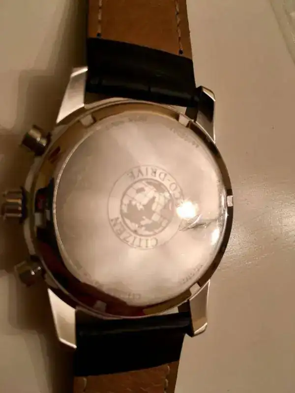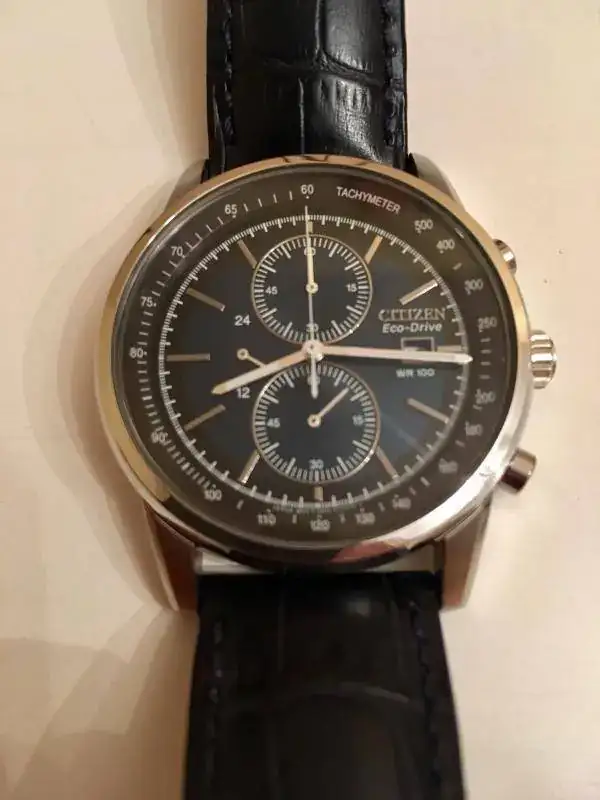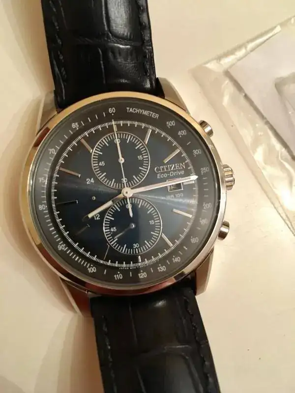 Saco a la venta este Citizen Eco Drive crono. La esfera tiene un bonito irisado azul, tiene mucha presencia. Se entrega con la milanesa original sin estrenar, y lleva una Hirsch Duke en muy buen estado. El reloj está perfecto, no tiene marcas ni pelos de ningún tipo, ha tenido muy poco uso. El eco drive siempre en carga porque ha estado en vitrina con luz diurna, por lo que la carga ha sido constante. Es un reloj comprado en UK, no lo he visto en tiendas españolas. Se entrega con caja y documentación. No cambios, gracias.