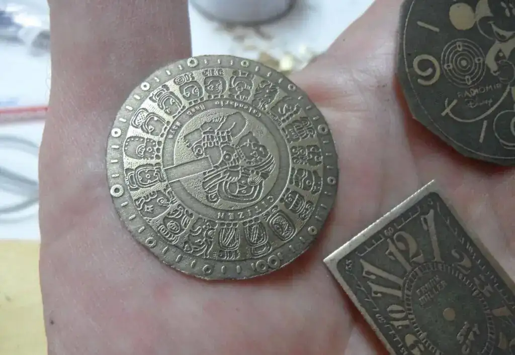 Como estaba haciendo pruebas de grabado al acido me puse a diseñarle una esfera chula y se me ocurrió ponerle un calendario Maya ( Calendario Haab ) pero aunque hice varias pruebas, despues de reproducir y vectorizar el diseño, lo descarté.