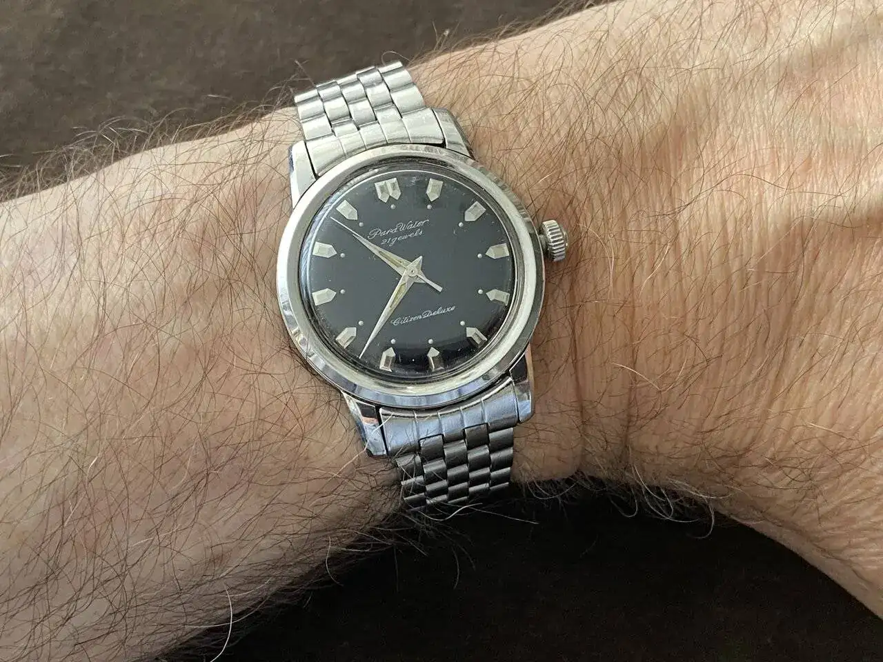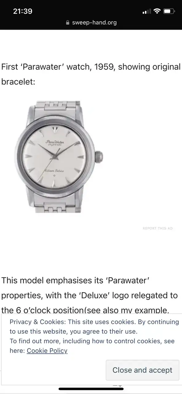 Pues bien: fue precisamente bajo el cobijo de esta colección como se incluyó el primer reloj japonés de la historia preparado para sumergirse en el agua, el «Para Water» (o «Parawater), que salió al mercado en 1959 como una variante más de los Deluxe.