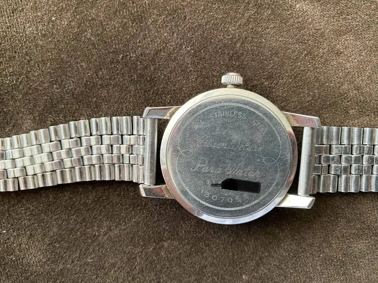 Las tapas solían llevar hasta mediados de los 60 la mención «Star», nombre de la compañía que fabricaba las cajas de los Citizen. La tapa del de esfera negra se ha difuminado más (aunque se lee al trasluz y se ve escrito “Star”), pero la del de esfera blanca se distingue muy bien todavía: dentro de una orla puede leerse All Stainless Steel, Citizen Deluxe, ParaWater y los números de serie y de la caja.