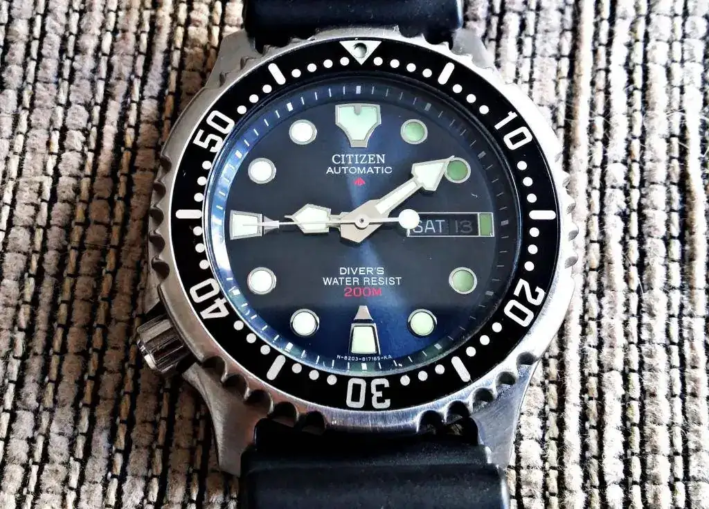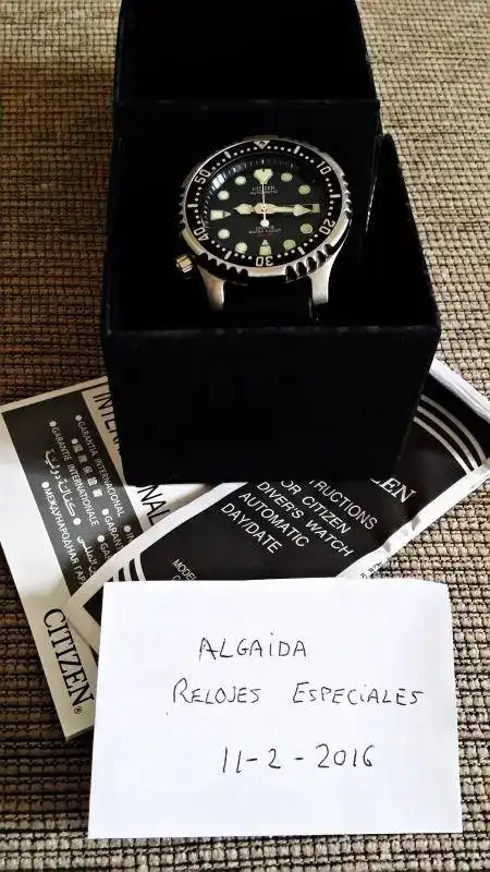 Vendo este famosísimo diver de Citizen. Al haber estado practicamente siempre guardado en caja, está en magnificas condiciones por tanto ninguna anomalía que reseñar de él.
