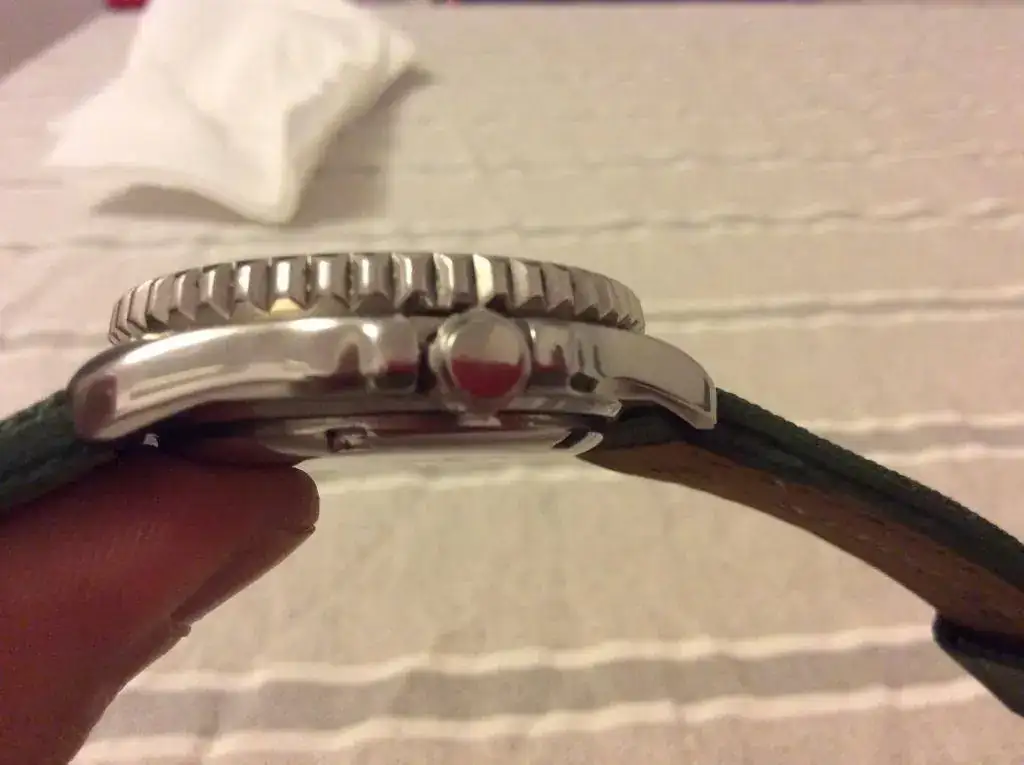El cristal está impoluto. Lo entrego con una correa de Nailon impermeable en verde militar sin estrenar, y la correa con la que me fue vendido (ver fotos), la cual está a medio gas. Ya digo que la zuludiver es resistente de cojones y solo ella ya vale 20 €.