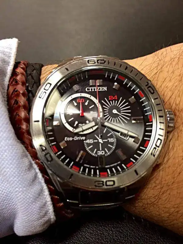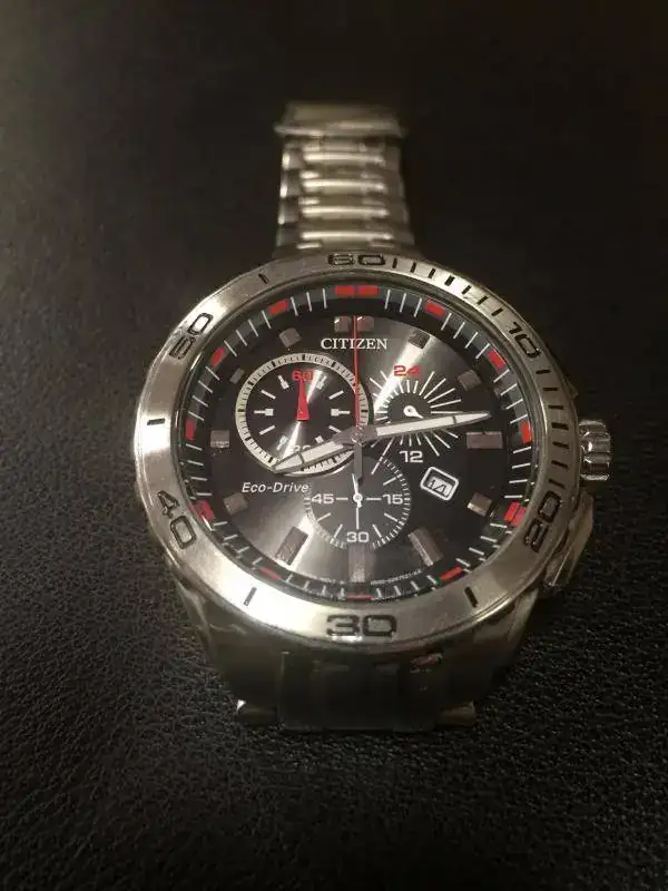 Saco a la venta este estupendo cronógrafo Citizen de carga solar, con reserva de carga de hasta 150 días, cronógrafo hasta 60 minutos e indicador 24 horas.