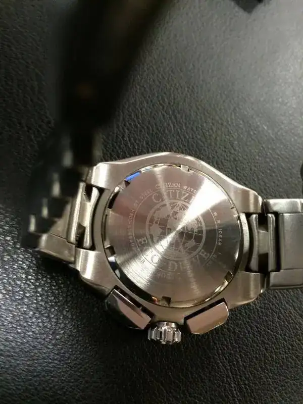 El reloj tendrá unos 3 ó 4 años, y tiene algunas marcas de uso, si bien nada importante. Lo típico, pelillos en armis y cierre. Mirándolo con detenimiento, he visto una pequeñísima marca en la caja, pero no he podido reflejarla en las fotos. El cristal, mineral, está perfecto. El bisel es fijo. Y tiene un tamaño de 48 mm, aunque no lo parece en la muñeca.