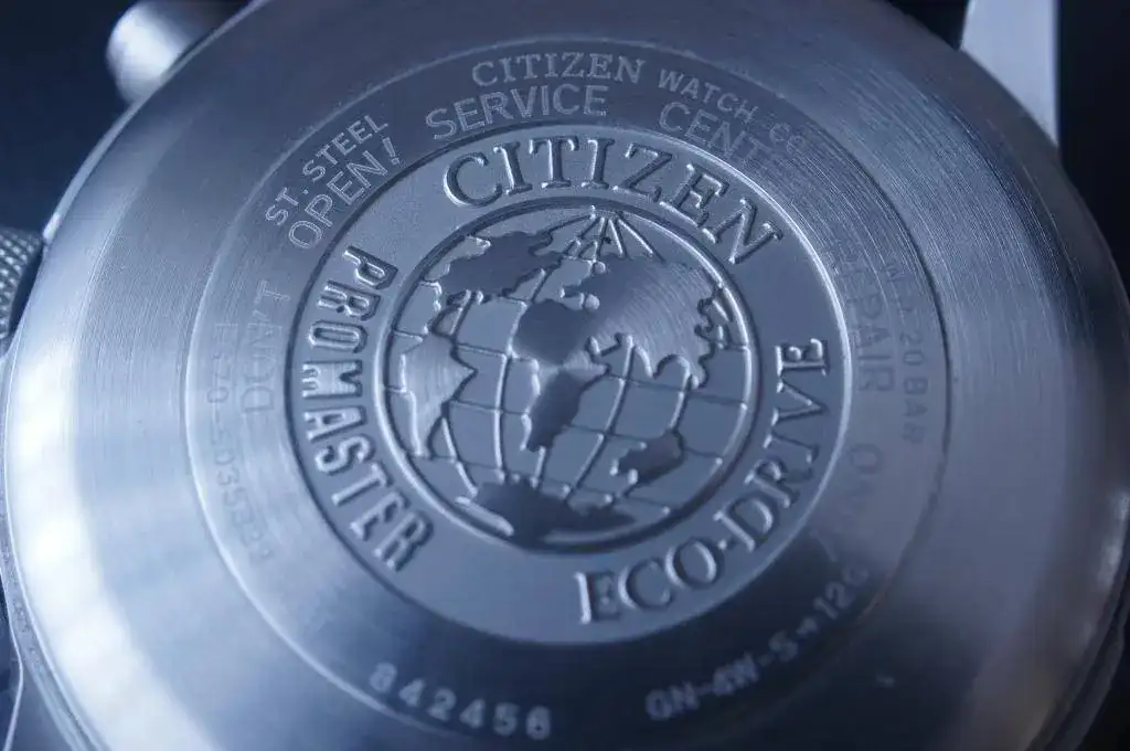 - Calibre de cuarzo ECO-DRIVE. La batería se recarga con energía solar, y tiene una reserva de carga de hasta 1 año.
