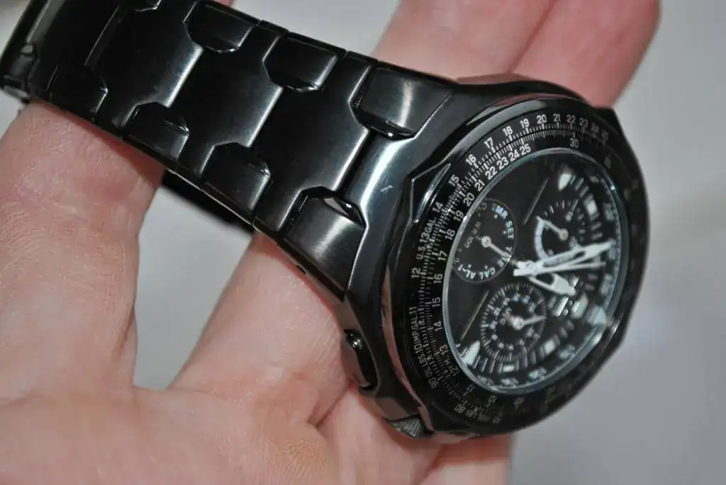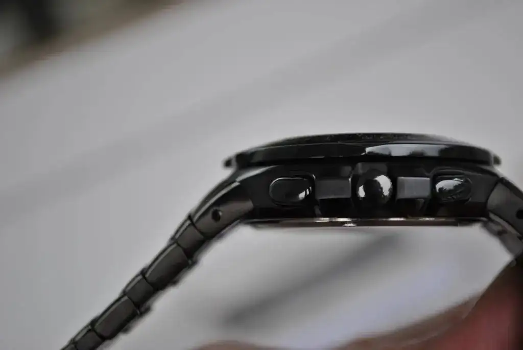 Calendario perpétuo en 22 zonas mundiales,world time,3 alarmas,99 minutos countdown time and one touch. Ion plated negro, muy resistente.----------------------[/TD]