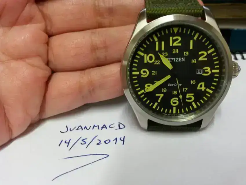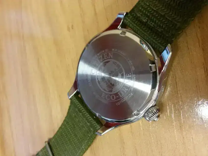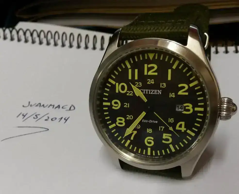 Vendo reloj Citizen Eco-Drive Urban modelo BM6831-16E de estética militar con muy pocas puestas. El motivo de la venta es por no usarlo apenas y dejar hueco a otro que viene. Tiene algo más de dos años, comprado en relojería. El reloj se entrega con toda su documentación así como caja originales, todo en perfecto estado. No tiene apenas marcas de uso, algún pelillo y una marca casi invisible en el cristal que enseño en una foto.