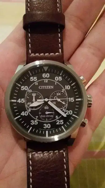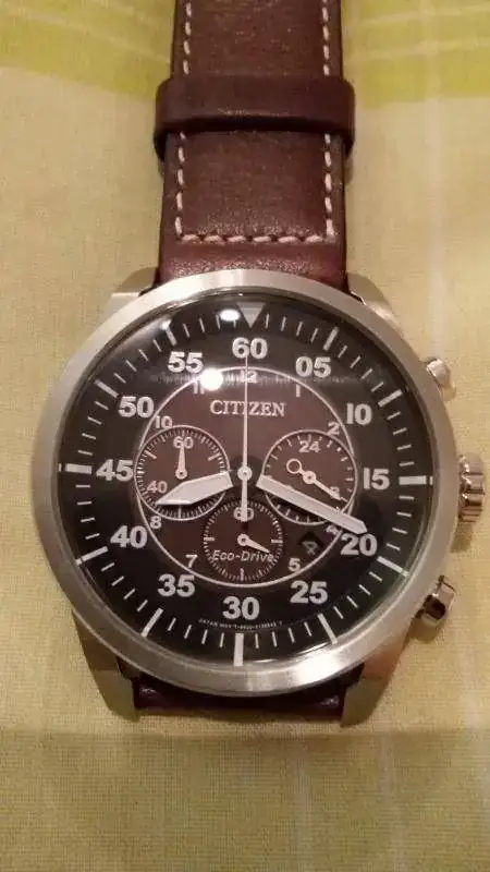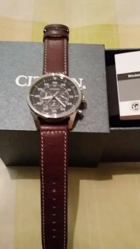Saludos. Vendo este Citizen que me han regalado y que casualmente ya tenía, el de la esfera blanca. Pensaba quedármelo para tener la parejita, pero con uno voy que chuto. Comprado en relojería física el sábado pasado (3.2.15) y puesto solo una vez y en casa así que quien lo compre, lo estrena de verdad, aunque ya se considera como usado. Como es natural, no tiene nada, está impoluto. Este reloj es sin duda para los amantes de las tres P (paelleras, palanganas y parabólicas) dado su aspecto contundente y sus 44 mm de nada.. No obstante como podéis ver, el reloj es muy elegante y si algo me gusta de él es su acabado. La caja pulida totalmente le hace aún más bonito si cabe y la correa de piel vintage le queda como anillo al dedo. Viene con toda su dotación y garantía de dos años enterita. El precio que pongo a esta preciosidad es de 130 € envío aparte. ahora unas malas fotos.