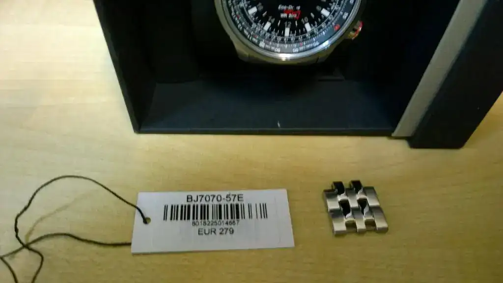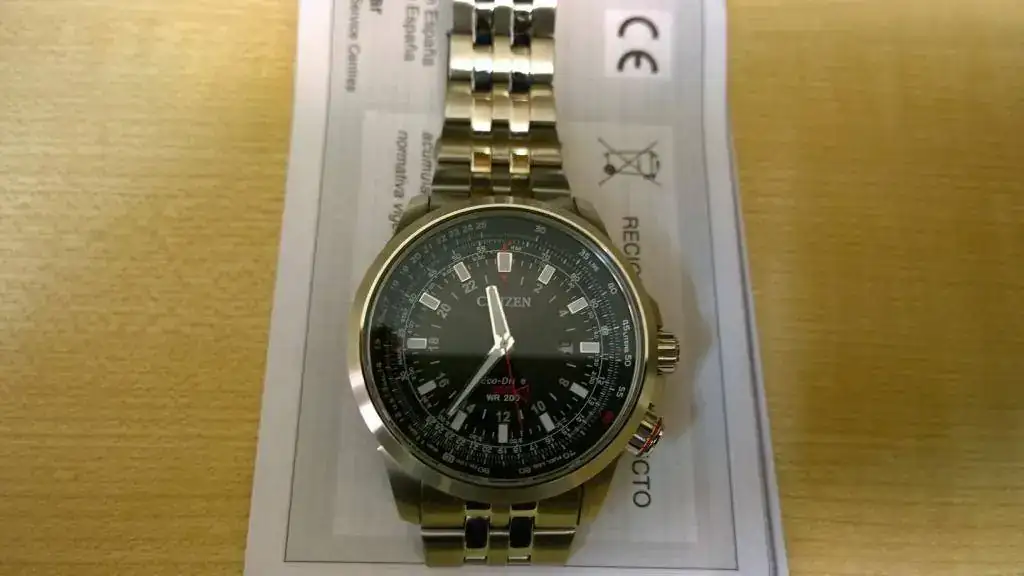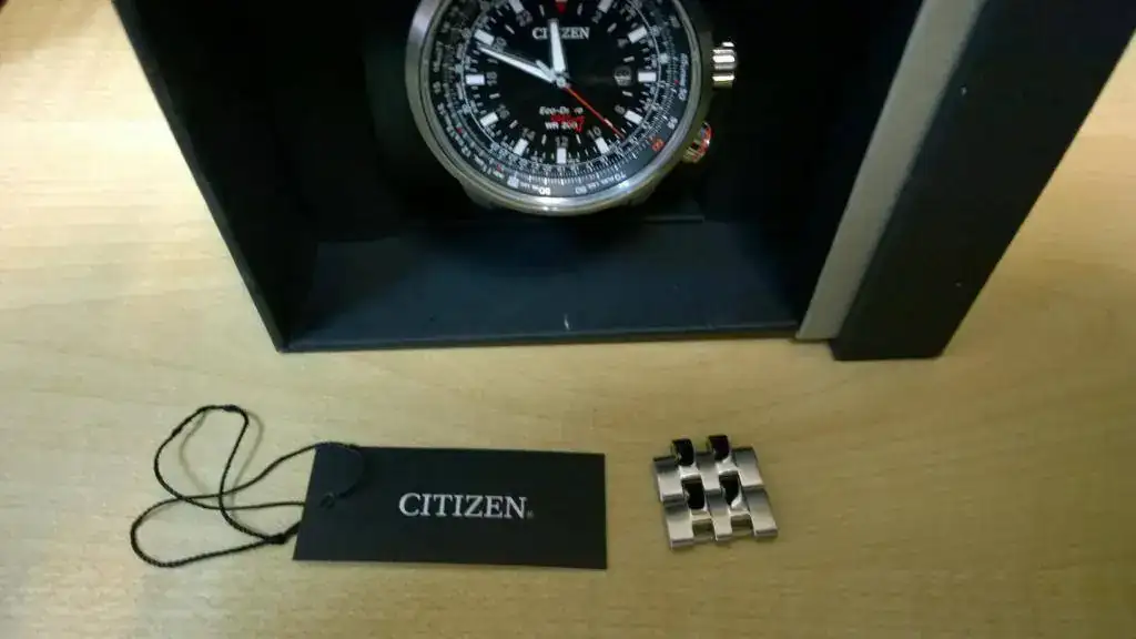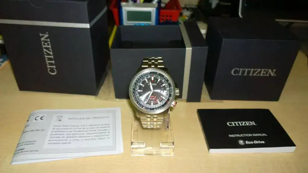 Es un Citizen Eco Drive GMT BJ7070-57E Pilot y 200m de resistencia al agua, con el lumen típico de los Citizen ¡Espectacular!, ni siquiera es de reestreno sino NUEVO completamente, tan es así que la garantía será sellada en el momento de la venta para que se inicien los 2 años de la misma. Va con toda su dotación: caja externa, caja interna, manuales, eslabones sobrantes, garantía, etiqueta de venta donde pone 279€ (Ahorro de 70€). Excelente momento para adquirir este contundente GMT