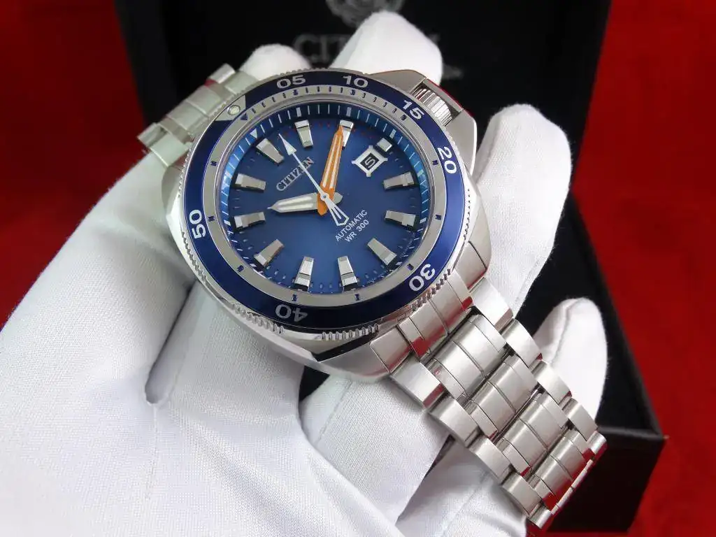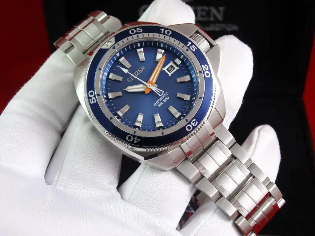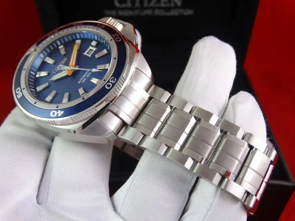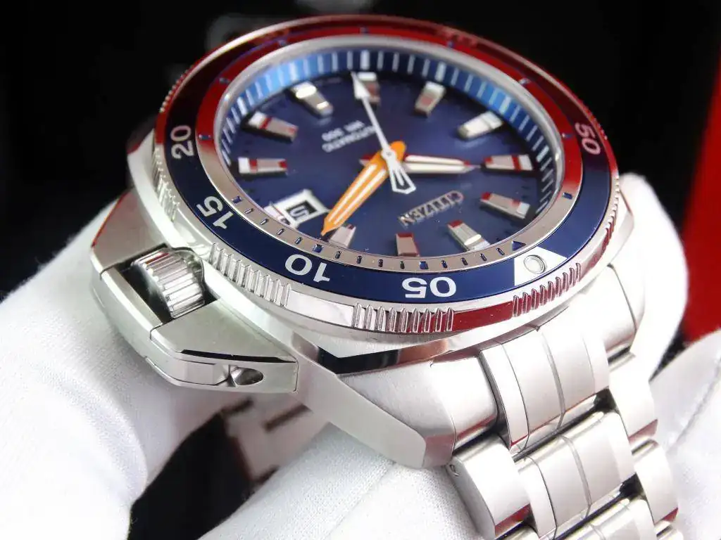 En esta ocasión vamos a promocionar una pieza de una calidad indiscutible, manufacturada por Citizen. Es cierto que la firma ha estado construyendo relojes excepcionales con un precio muy contenido. El que presentaos hoy, es un Diver contundente, con una caja y brazalete que se adaptan excepcionalmente bien a la muñeca, unos pulidos fantásticos y una combinación de color de esfera azul y detalles naranja que son siempre un acierto.