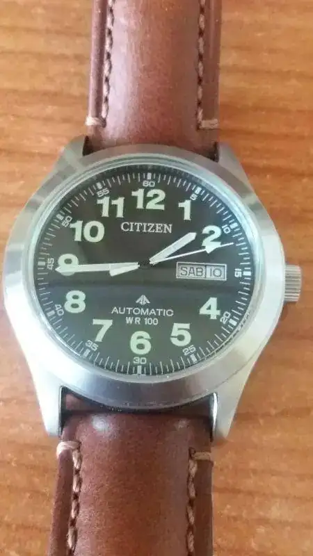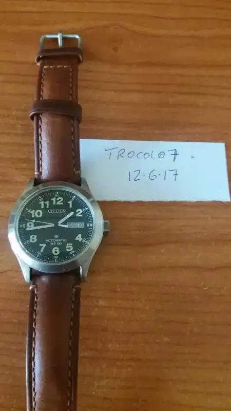 Buenas tardes. Vendo este clásico muy difícil de encontrar. Está en muy buen estado. Su funcionamiento es muy correcto y apenas tiene unos pelillos en el pulido de la trasera, pero muy leve. Lo que parecen pelos alrededor de la esfera, es polvo. La correa no es la suya pero está en muy buen estado también y tiene mucha vida por delante. De color marrón y alomada, le queda muy bien. La hebilla sí es la original. Sin caja ni garantía, pero irá debidamente empaquetado y protegido. NO CAMBIOS. Seguidamente, cuadro y fotos.