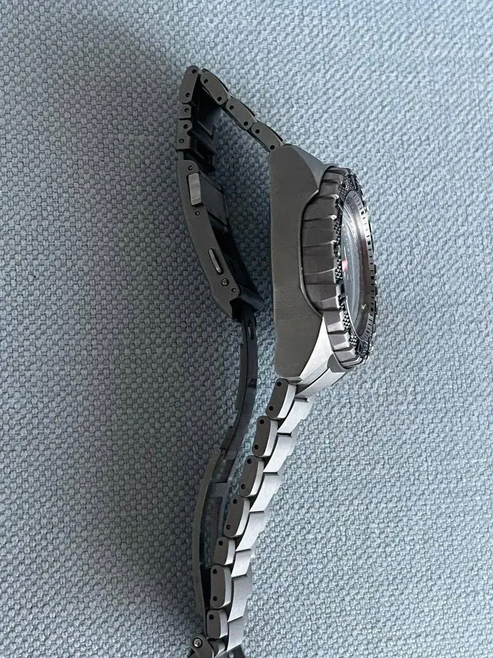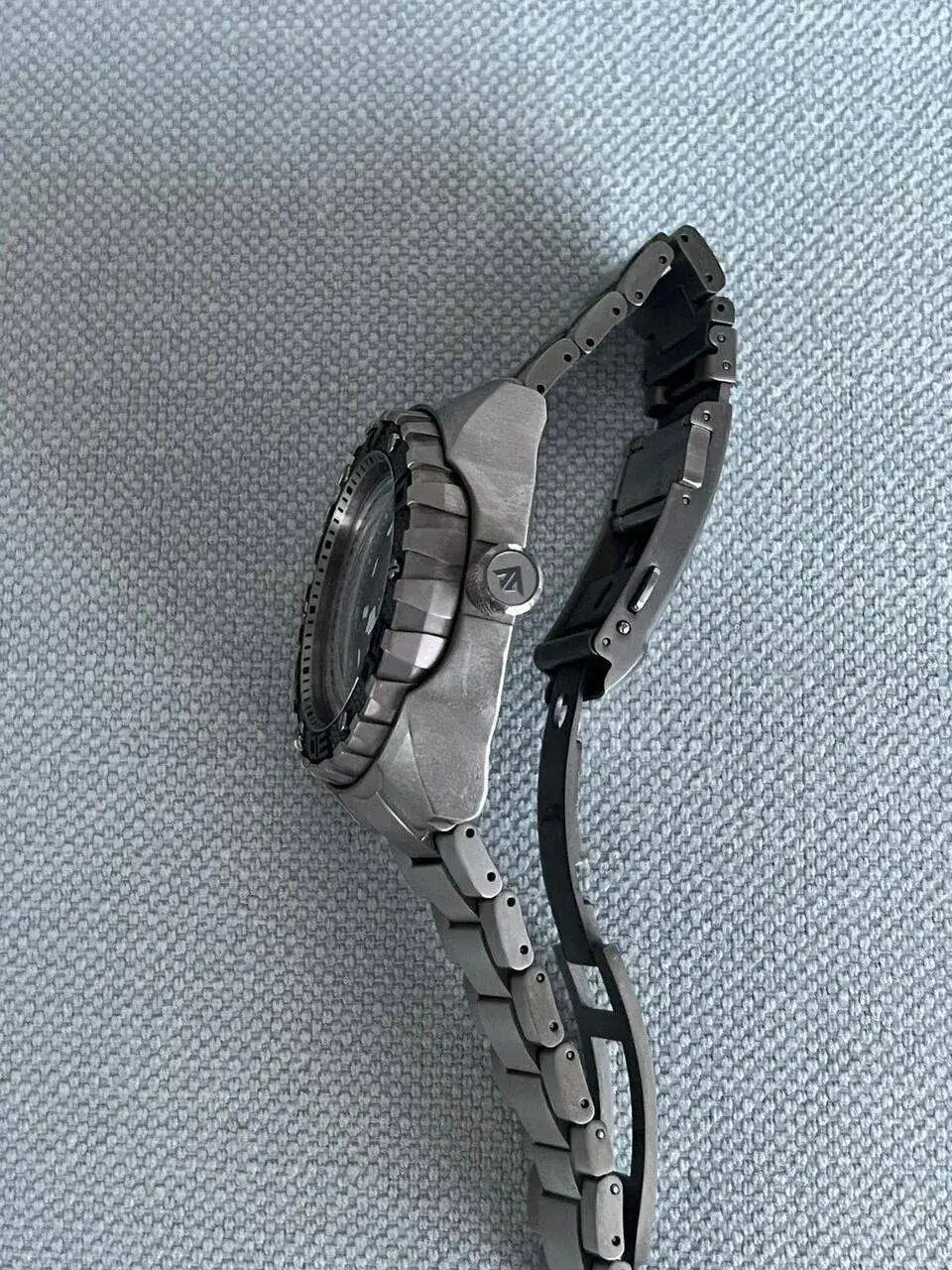 Saco a la venta este relojazo espectacular que no pasa nunca desapercibido. Pese a su contundencia es fácil de llevar gracias a sus asas contenidas y al titanio, que hace que resulte muy cómodo de usar (peso 147 gramos). Movimiento automático Miyota 9051 (28.800 alternancias) y 200 metros con certificado ISO 6425. Caja y brazalete Super Titanium Duratec MRK y cristal de zafiro con tratamiento antireflejos.