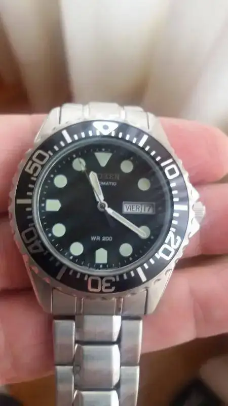 Hola a todos. Pongo a la venta este Citizen ref. NH8010-57E, que no es precisamente muy común, ya que se ve bastante poco y si tratamos de indagar en internet sobre este modelo, apenas hay referencias. Pero bueno, a lo que voy; el reloj está en perfecto estado, comprado nuevo el 15 de abril del presente año y con toda la garantía por delante. Solo me lo he puesto una vez y como supondréis, el reloj está intacto. Viene con su caja exterior, interior, eslabones sobrantes y garantía hasta abril del 2017. La caja mide 39 mm sin corona, calibre 8200 automático, 40 horas de marcha y 21 joyas, bisel unidireccional de 60 clics y corona roscada. La verdad que es un diver con una pinta estupenda y aún siendo contenido su tamaño, es bastante contundente, pero fácil de llevar.