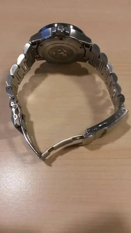 El reloj se encuentra en perfecto estado de funcionamiento, si bien presenta algunos signos de uso, sobretodo en las partes del armis que sufren un trato mas duro, a las fotos me remito. El cristal esta impoluto y se envía con los eslabones sobrantes y la caja y documentación original.