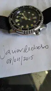 Conocido citizen ny 0040, este le compre en ebay hace 4 años aprox. y le he usado para piscina y mar, esta usado y tiene sus marcas, ninguna gorda pero arañazos tiene, el cristal también presenta varios arañazos no vistos a simple vista, quizas el lo que peor esta del reloj.