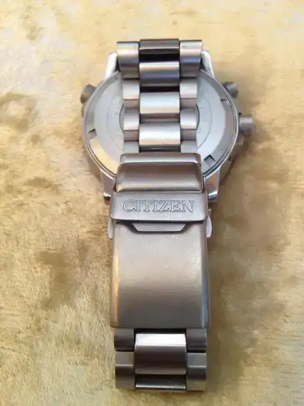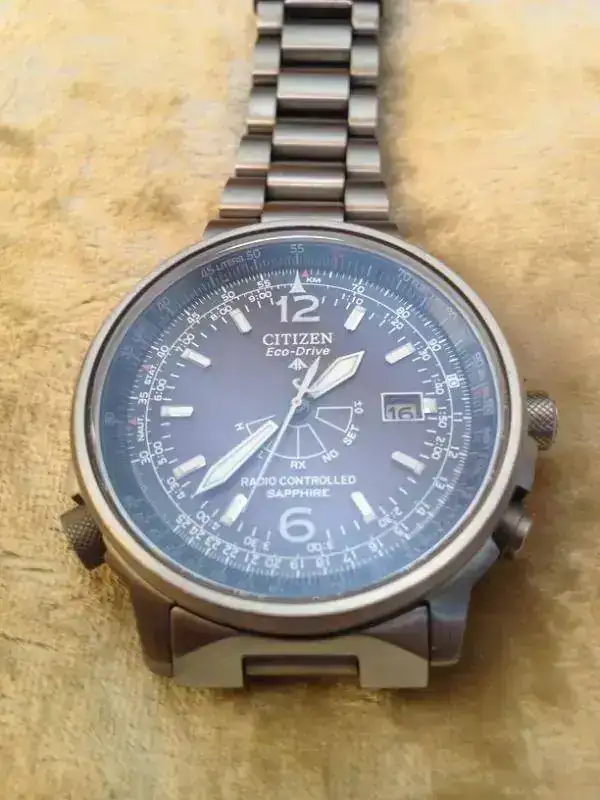 Se trata de un citizen radiocontrolado, en titanio y con cristal de zafiro. Muy comodo de llevar debido al escaso peso y contenido tamaño, aunque no pequeño, su gran dial lo hace perfecto, tiene una gran visibilidad, con un lumen azulado muy bonito.