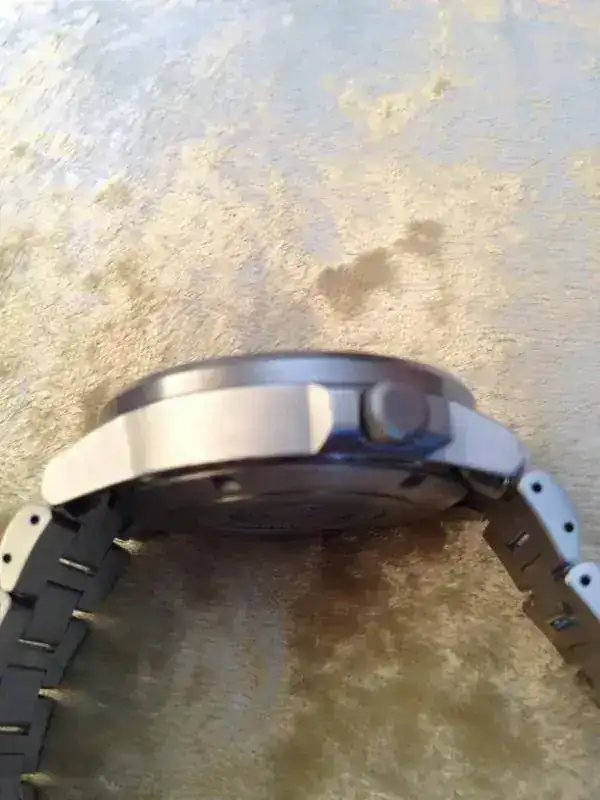 El reloj esta en buen estado, no puedo decir que haya tenido un uso delicado, marcas mas reseñables en el biselado donde se inserta el cristal de zafiro y en el cierre del armys. El caso es que esta para usarlo sin miedo y contemplaciones, para un uso diario que es como yo lo he usado. He de comentar que le falta la antena que amplifica la señal de radio, para sincronizar el reloj en zonas donde no se recibe la señal con intensidad.