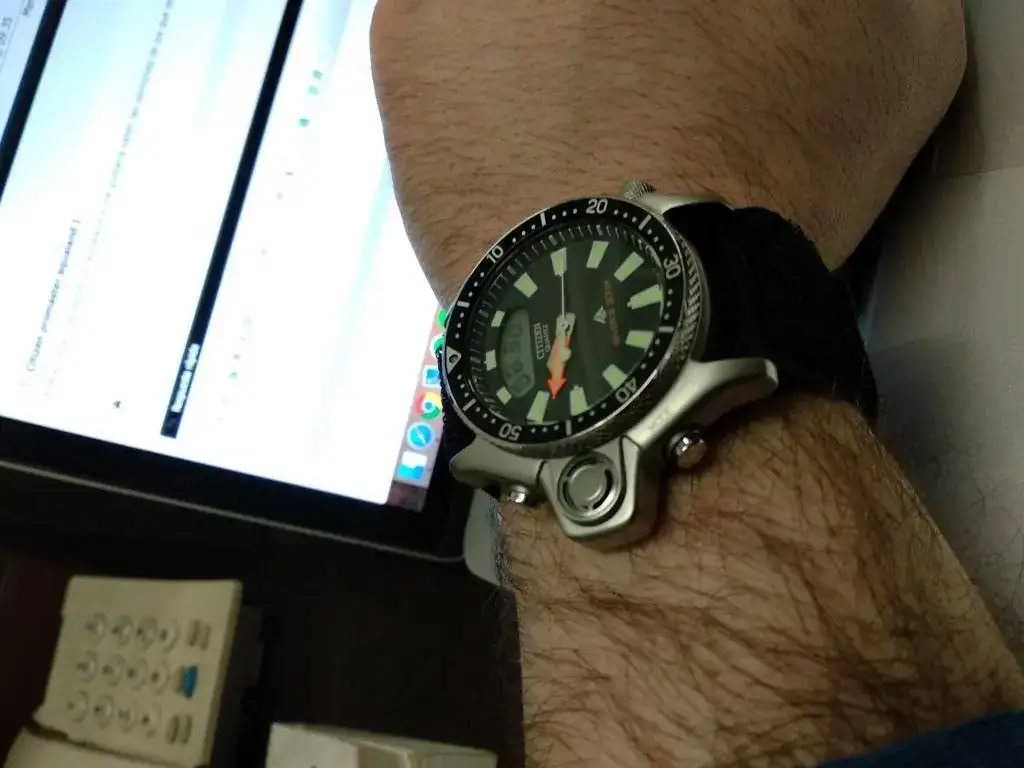 Yo hice lo mismo que tú, y no dejé de maldecirme, años después, hasta que volví a conseguirlo. Primero un vintage (que se ahogó, y ya me desistieron de seguir intentándolo), y luego dos de segunda generación.Buenas!! Pues mira, justamente lo llevo hoy. Tuve el Aqualand de 3 pilas, lo vendí por que soy idiota y hace relativamente poco me compré el "nuevo". Es una maravilla, eso sí, como apuntaba un compañero, la correa es un poco intratable. Yo lo suelo llevar con una de nylon de dos piezas o con la que ves en las fotos, que permite alargarla y como bien decían, si se te sale un pasador debajo del agua, no pierdes el reloj![]()