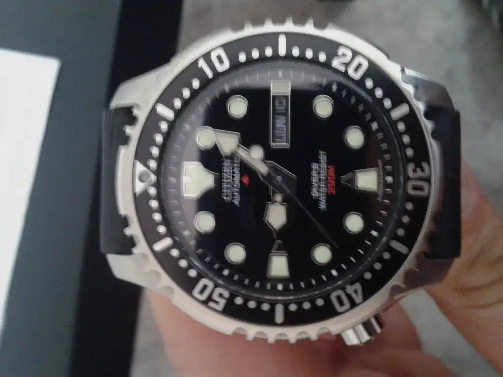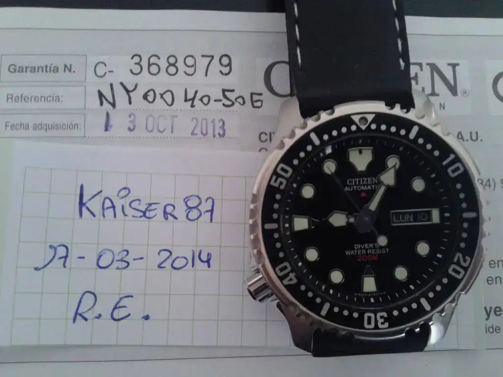Vendo Citizen Promaster Automático 200 m de absoluto reestreno, el reloj fue comprado por mi el 3 de Octubre de 2013 en una relojeria barcelonesa, por lo que le queda muchisima garantía por delante. El reloj va completo con caja exterior el estuche del reloj la ya clásica bombona de oxígeno y el reloj va con armis completo (el caucho no esta incluido) el reloj a sido usado y no es broma 3 veces contadas asi que lo dicho es un de reestreno.
