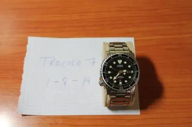 Saludos a todos. Vendo mi Citizen Promaster en un estado estupendo. Es del 2011 y me lo habré puesto una docena de veces en todo este tiempo. Solo tiene lo típicos pelillos en el cierre, por lo demás, impecable. Sé que es automático pero nada más, pues desconozco qué calibre tendrá, pero va de maravilla, eso lo puedo certificar. Va acompañado de su caja, que se me olvidó fotografiar, pero que la tiene y un caucho totalmente nuevo que venía con el reloj cuando lo compré. El armis lo compré más tarde. Ya no tiene garantía y los papeles los he perdido. Por lo demás, todo correcto. El precio que pongo es de 130 euros, envío incluido.