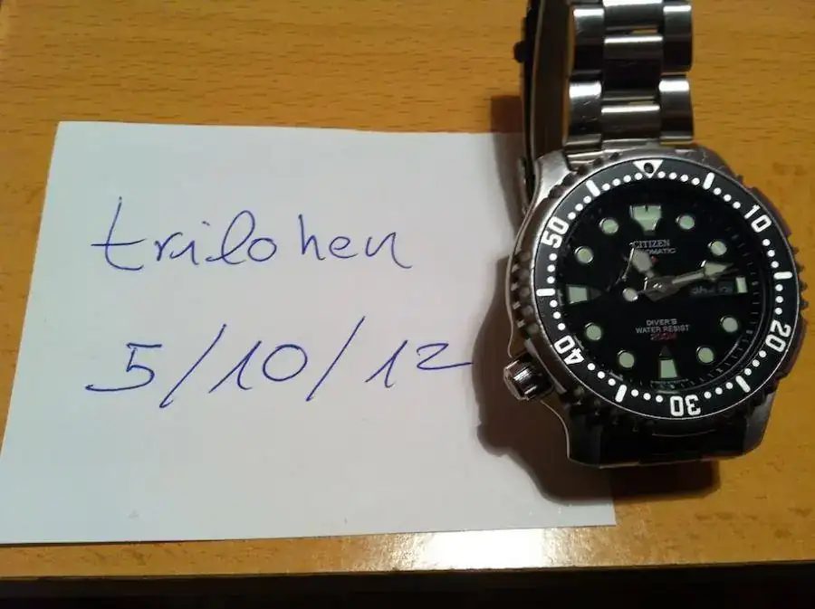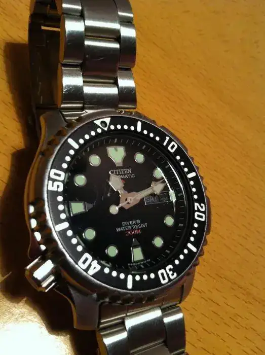 Por falta de uso, vendo este Citizen Promaster Automatic Diver´s 200 m NY0040-50E con armis de acero inoxidable, un reloj archiconocido en el foro y en el mundo entero vamos. Funciona a las mil maravillas y se encuentra en muy buen estado con mínimas señales de uso. Tiene su correspondiente extensión de buceo y, por si no queda claro en las fotos, es de esfera negra. Sólo una cosa a destacar: tiene una leve marca en el cristal mineral Hardlex a la altura de las 9. En casi todas las fotos se pude apreciar aunque queda magnificado por los reflejos (y por mi declarada incompetencia en el mundo de la fotografía) y que con un simple pulido desaparece.