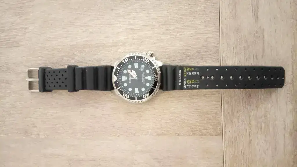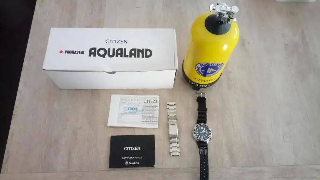 Siguiendo con la reducción de piezas, saco este Citizen Promaster Aqualand BN0150. Lo compré en agosto de 2016 al mercante Relojería Suiza, por lo que aún tiene garantía por delante. Está en perfecto estado, y muy poco usado (lo usé al principio que lo compré, pero después casi no lo he vuelto a sacar), así que está en perfecto estado. Solo reseñar una levísima marca en el bisel (que he intentado sacar en una foto), a la altura del minuto 26, y la inscripción de la correa un poco borrosa en sus últimas líneas (la correa está cortada a mi medida). Decir que le adjunto el brazalete original que le compré después en un CO de mi ciudad, que es de muy buena calidad para lo que es el reloj (mucho mejor que brazaletes de relojes más caros), y que solo ya cuesta unos 80€ (y he leído que en el SAT es bastante más caro). El brazalete también está perfecto, ya que casi siempre lo he usado con el caucho (solo le he visto algún pelillo sin importancia), y adjunto también los eslabones sobrantes. Lo envío con toda su dotación (lo que se ve en las fotos) por Nacex, y el coste del envío ya va en el precio. Para este reloj no quiero cambios, salvo que sea por un Casio Rangeman. Creo que no me dejo nada, para cualquier cosa privado.
