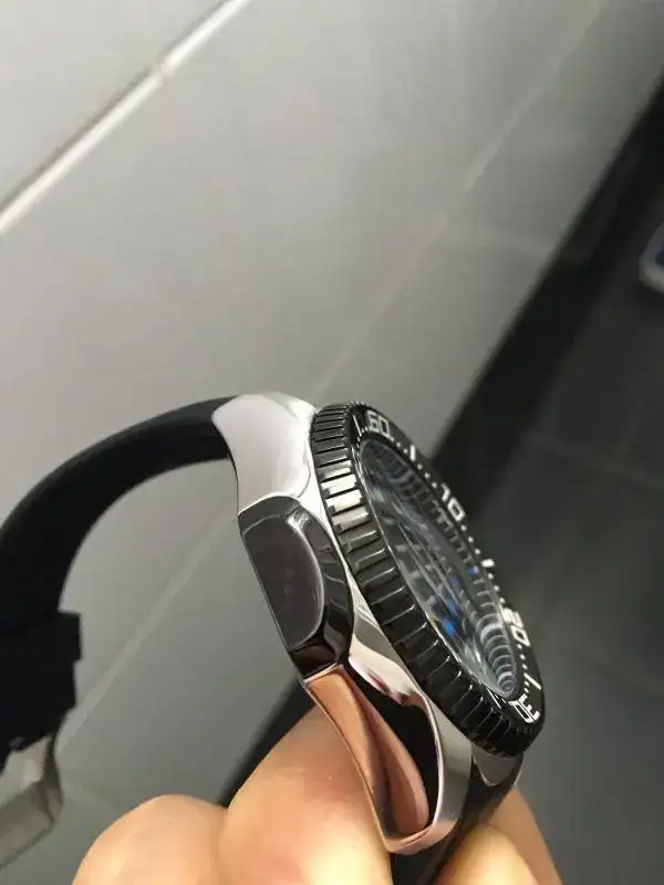 El reloj ha sido usado con moderación y casi no presenta marcas de uso. No es nuevo y buscando ángulos puede verse algún microarañazo en el bisel con una lupa. Las fotos no lo muestran porque, a simple vista, no se ven. Sólo reseñar un leve arañazo en el caucho que se exagera en una de las fotos. Del resto, caja y cristal, perfectos.
