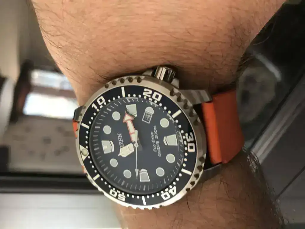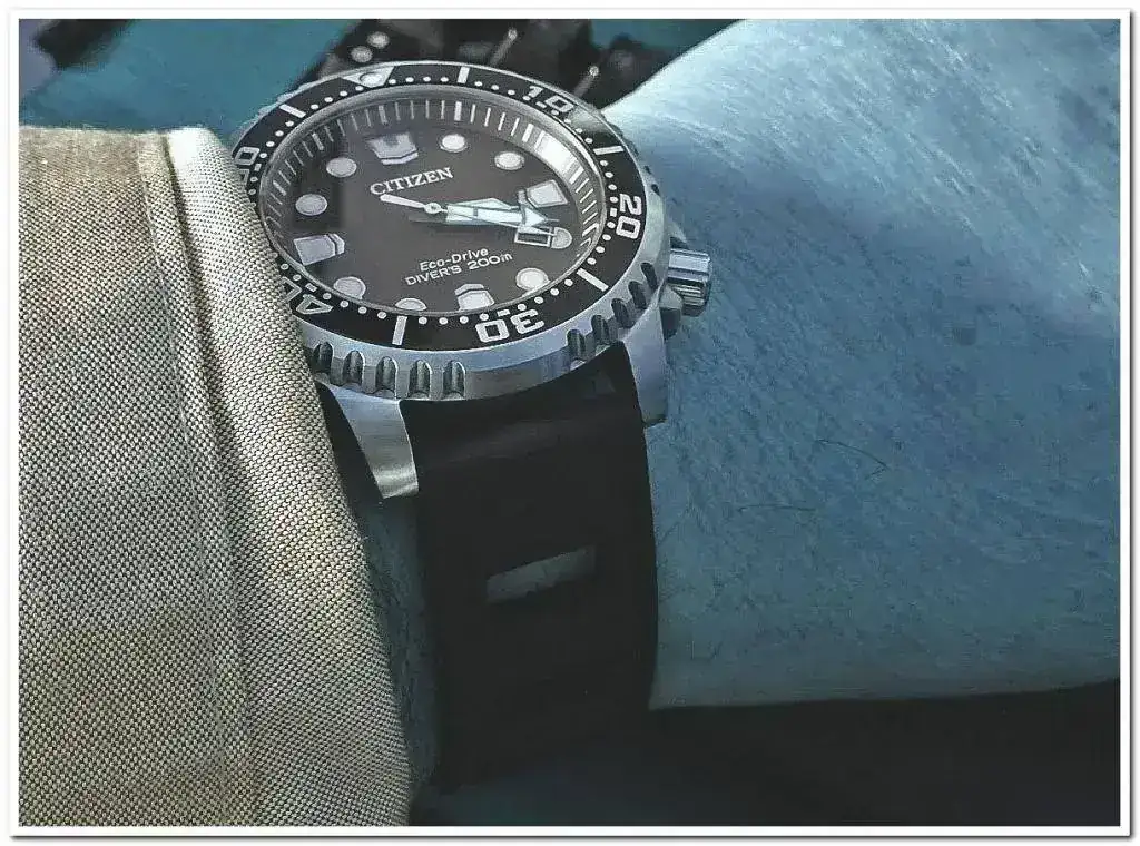 Es nada menos que un diver profesional certificado ISO 6425. El reloj reúne casi todo lo que buscaba, salvo un cristal de zafiro, ya que lleva un simple mineral con antirreflejos (¿alguien sabe si se venden cristales e inserts de zafiro para este reloj?). Su tecnología ecodrive, que Citizen ha elevado a ser la mejor del mercado, es la que más me llamaba la atención, un cuarzo solar con reserva de seis meses que no tendré que abrir seguramente nunca, con lo que su estanqueidad no se verá comprometida.