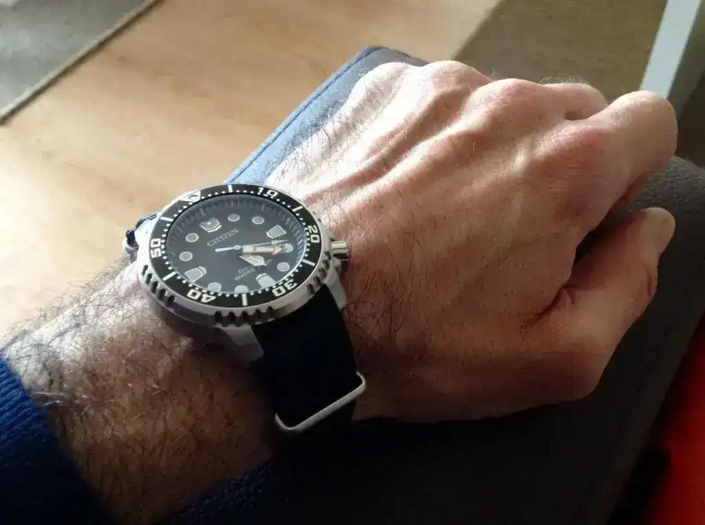 Finalmente, ya que estaba entre mis favoritos y se acabó poniendo a tiro en el momento adecuado, he acabado con un Promaster de Citizen, el Diver'S Eco Drive 200 Mt BN0150-10E. Negro, mi preferencia, y sin armis, ya que alternaré entre su caucho y una nato.
