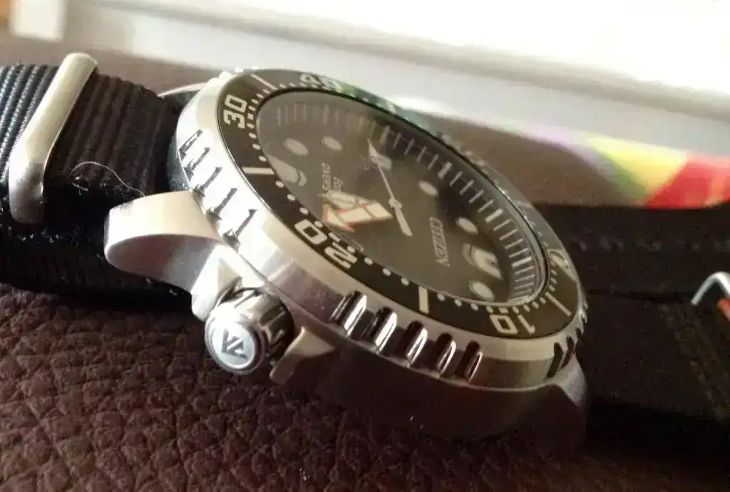 El caso es que llevaba un tiempo considerando la compra de un cuarzo analógico de batalla para diario, para lo que había considerado varios modelos. Buscaba varias características juntas que, al final, ningún reloj cumple: un precio razonable; maquinaria de cuarzo y a poder ser solar (nada de relojes mecánicos: fiabilidad y falta de mantenimiento, coger y usar); un buen lume, tritio aún mejor; corona roscada o por lo menos protegida; cristal de zafiro; que tuviera al menos fechador; y estilo diver o militar, por legibilidad y gusto personal.