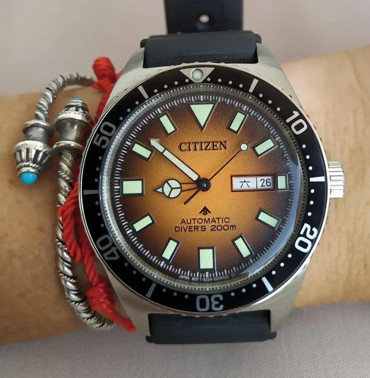 Cuenta con un calibre 8204 con parada en segundero. Su cristal es mineral (que a estas alturas ya podrían hacerlos todos con zafiro), hace un efecto abombado y protegido por el bisel 1mm o así. 200m con certificado ISO.