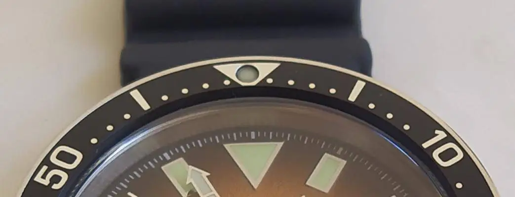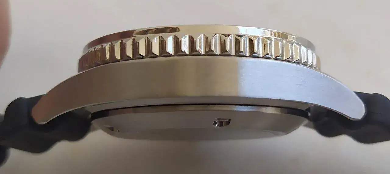 Su bisel es pulido y el insert de aluminio, el que citizen le pone a muchos modelos y es una de las dos cosas que no me gustan del reloj. De 60 clicks.