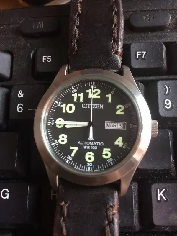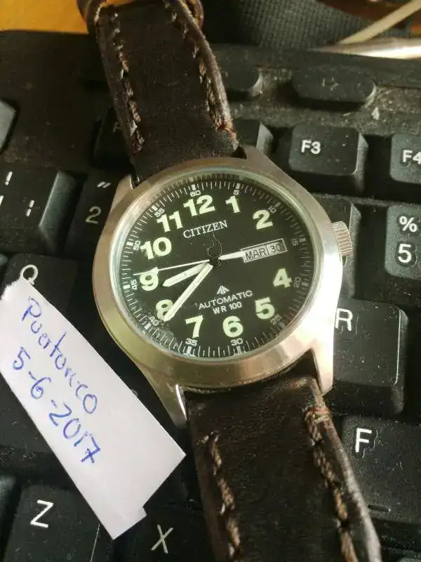 ). saco este que tanto esfera como bisel estan impolutos... solo la tapa de atras tiene las tipicas microrayas del roce con la piel.Es un reloj creo que descatalogado, maquina 8000 de miyota, fiable. La hebilla es original, pero la correa de piel no. Va como mi suegra, fiel a dar la hora