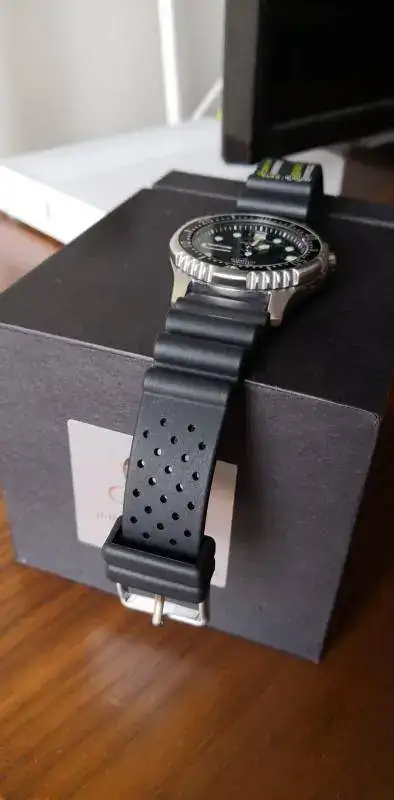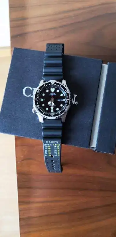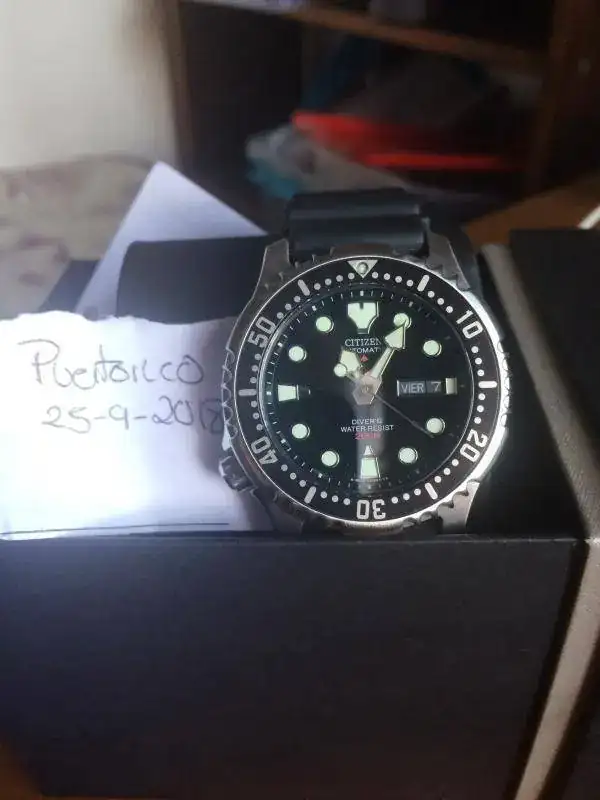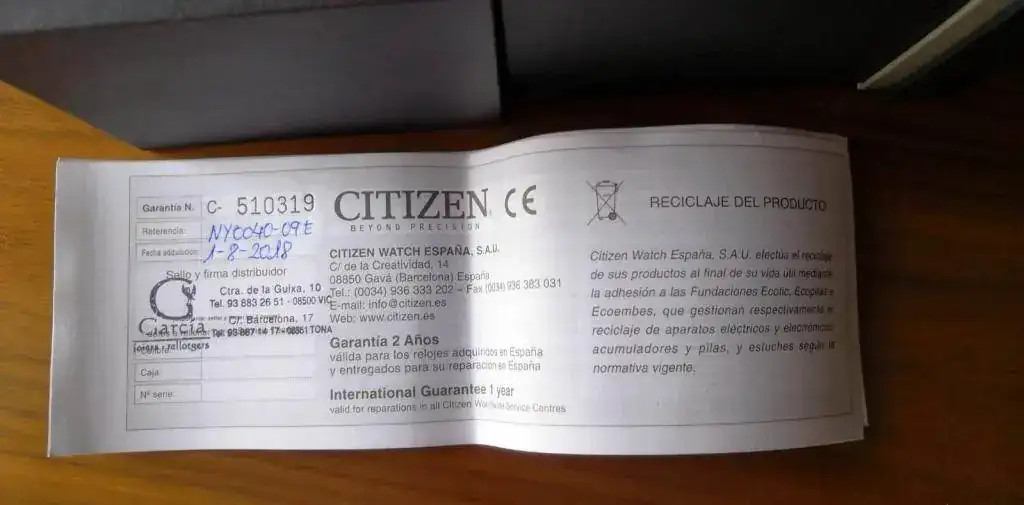 Hace poco paseando me encontre en una joyeria, el 8 de agosto el reloj y lo adquiri, pues ya sabeis que la relación precio calidad es excepcional y que lleva varios años descatalogado.. Asi que tiene excasamente un mes y algo, pero solo ha sido puesto una vez, y como podeis ver esta impoluto y quien lo adquiera tiene toda la garantia de dos años practicamente por delante