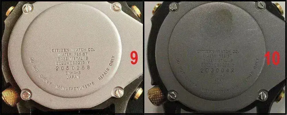 - Base TITANIUM TIB-IG: hecho de titanio. Las siglas significan «Titanium Ionic Black-Ionic Gold». O sea, titanio con PVD negro y la parte de atrás con el acabado en dorado.