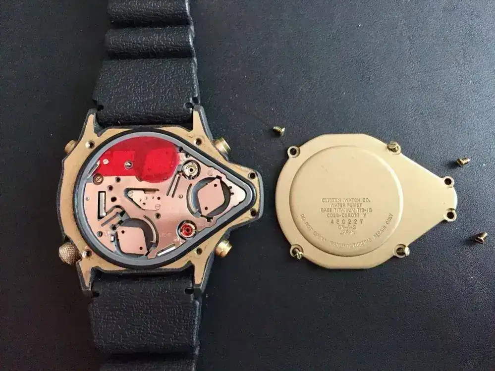 El reloj estaba alimentado por tres pilas: una para el sensor, otra para la pantalla digital y la úlitma para el reloj analógico.
