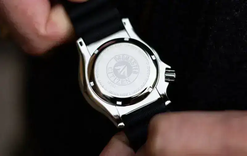 La tapa trasera tiene la inscripción «Promaster» y datos como el calibre y tipo de caja. Los primeros modelos venían con la tapa trasera gravada en relieve, pero los últimos pasaron a venir con gravado en láser.
