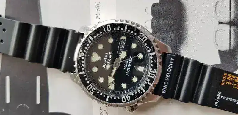 El reloj era el mismo que cualquiera podía conseguir en una tienda de relojes, pero con ciertas modificaciones en la esfera, como la inscripción «Marina Militare» en vez de «Citizen Automatic» y «500 m Automatic» en vez de «Diver’s Water Resist 200 m».