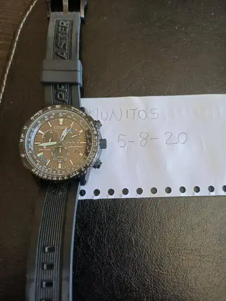 Buenos días continuo vaciando y reestructurando la caja, saco a la venta reloj Citizen Radiocontrolado eco-drive. Reloj en estado impoluto, con toda su dotación y con 8 meses de garantía. Recuerdo que es un reloj de 420€ de tarifa oficial. Es un reloj con una esfera muy bonita con un tamaño de 44mm, cristal de zafiro y capa antireflectante interior. Cualquier imperfección que se vea es polvo. Paso a la ficha: