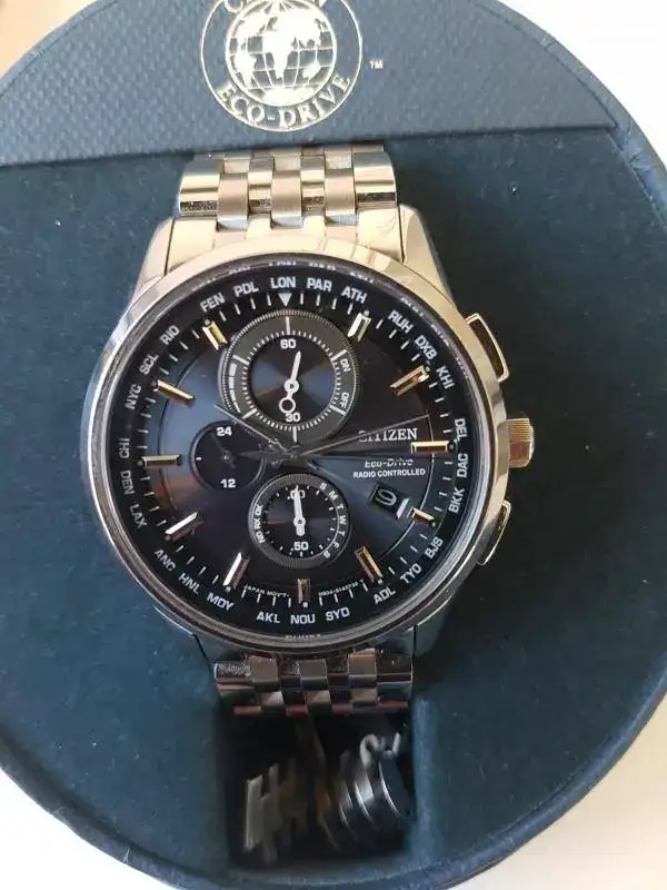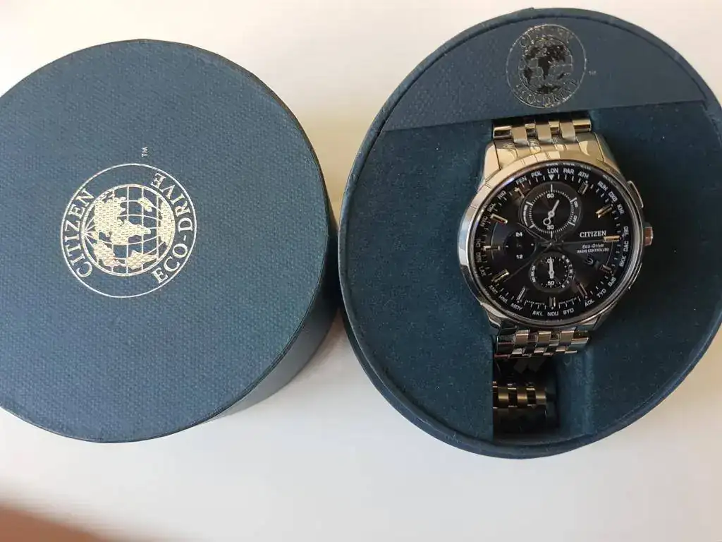 Saco a la venta este Citizen radiocontrolado con movimiento eco-drive por falta de uso, el reloj está en un estado muy bueno salvo una pequeña marca a la altura de las 5 . Incluyo caja y si me dais un correo electrónico envió instrucciones en PDF. En estos momentos no quiero cambios, pues tengo la vista puesta en otro