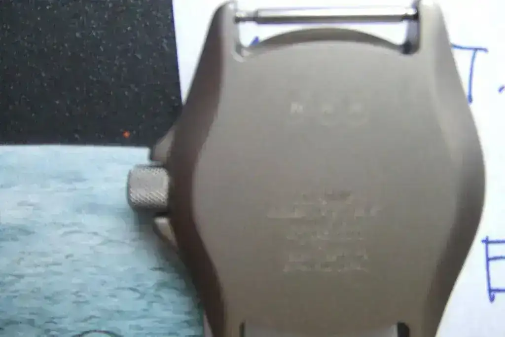 caja: titanio duratec que debe ser mas resistente que el titanio normal, de 38mm de diametro, y ademas es monobloque. la corona es con una buena rosca,gruesa y resistente a 200mts. Por detras tiene una inscripción con las siglas nhk que debe ser las iniciales de la tv japonesa.