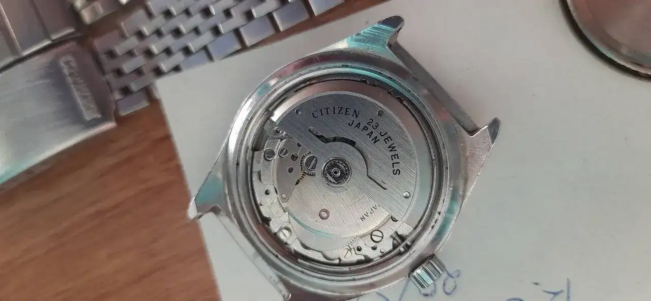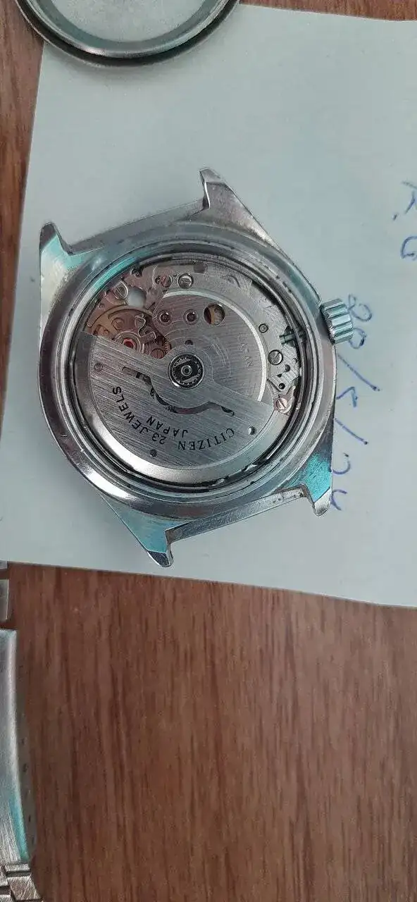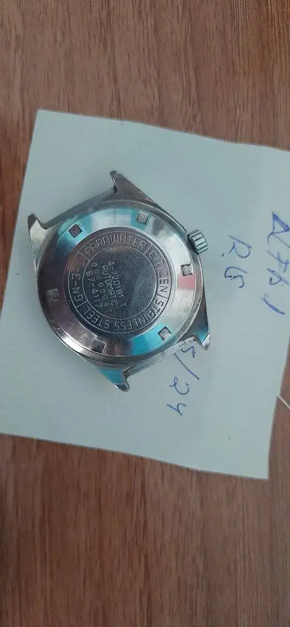 Data de los años 70. Caja de acero,parawater,antichock,corona firmada,correa firmada por Citizen. Cristal mineral no original.