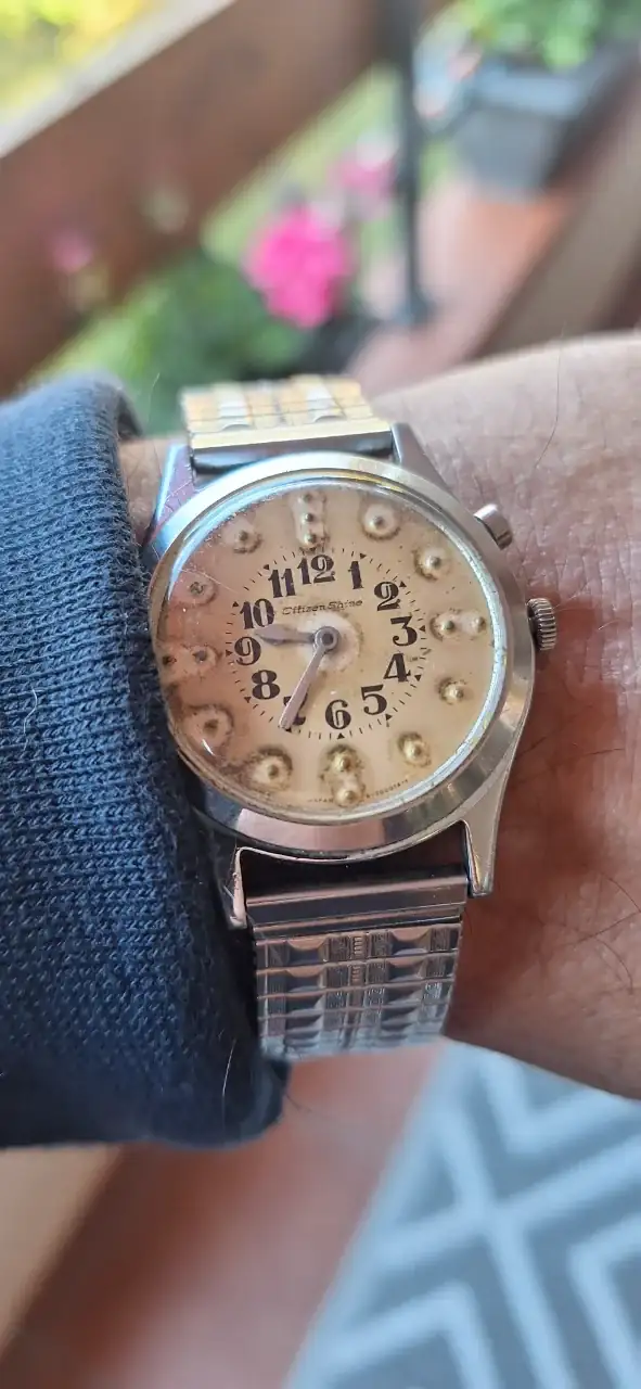 Este ejemplar tiene y así me gusta, las marcas del paso del tiempo y la "pátina" creada por el propio uso que tuvo en su momento. Para otros puede ser suciedad y lo entiendo, en mi caso pienso que es un reloj con historia y quiero mantener lo que llaman una "pátina honesta" y así se quedará.