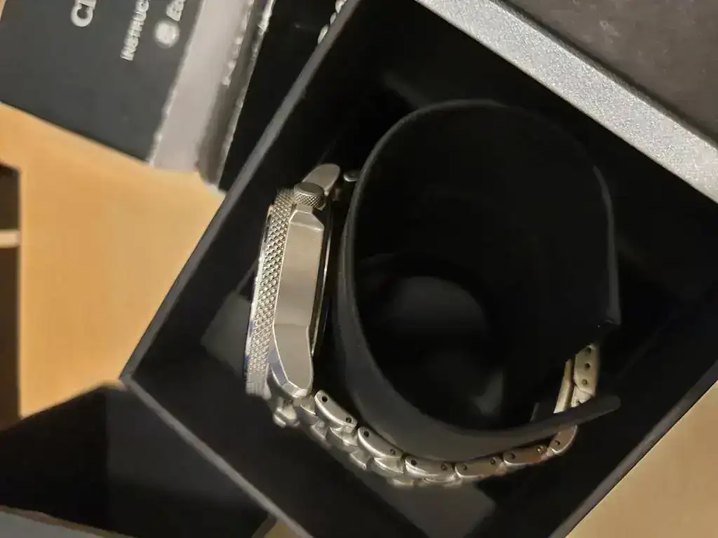 Ligeras marcas en armis y algún micro pelo en caja, cristal impoluto. (al ser de titanio ya sabéis que se hacen micro pelos solo de mirarlo).