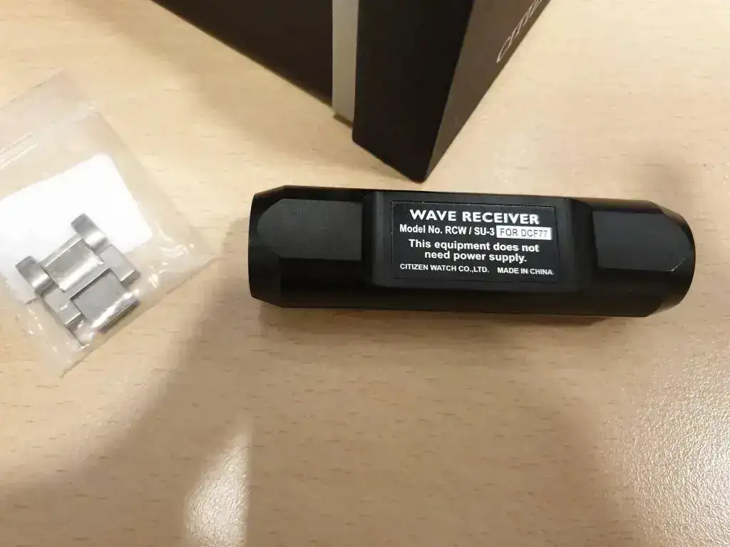 Caja de cartón, caja de madera, manuales, eslabones sobrantes y antena receptora de señal atómica.