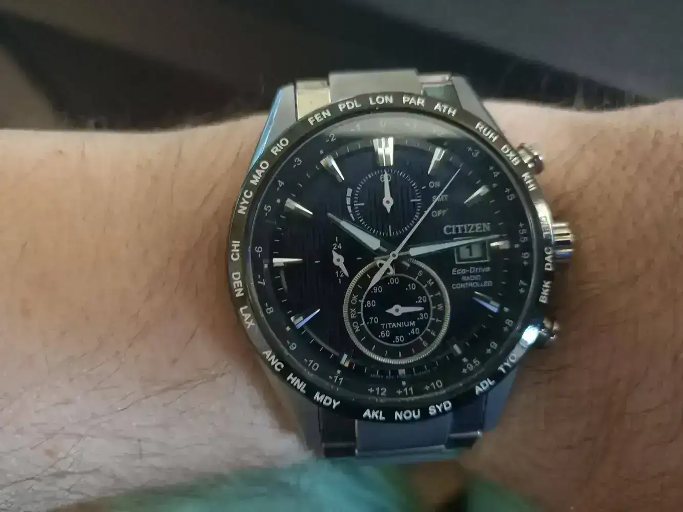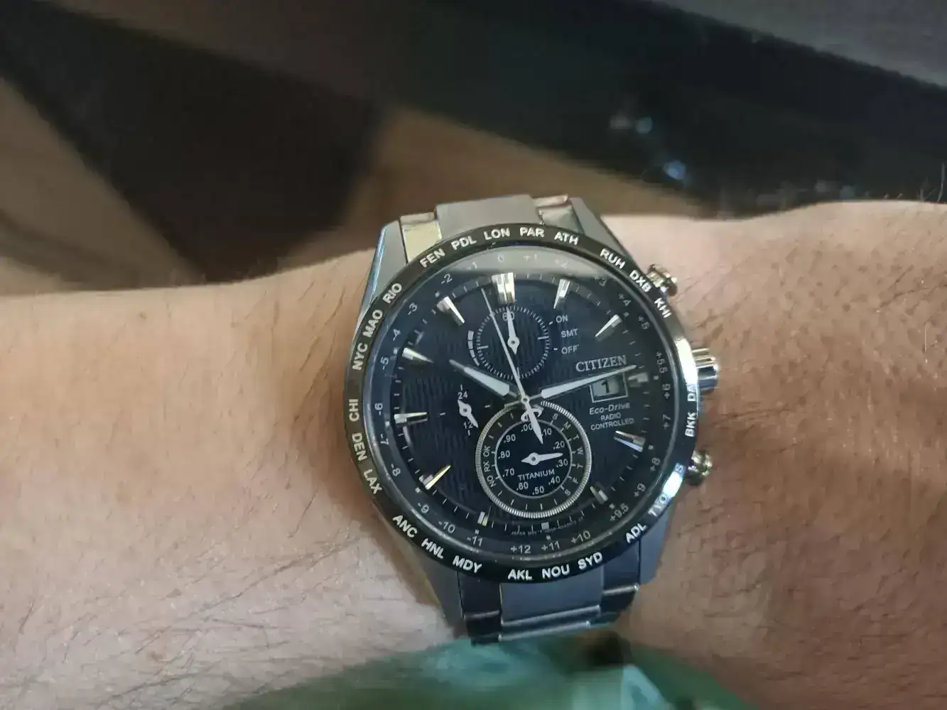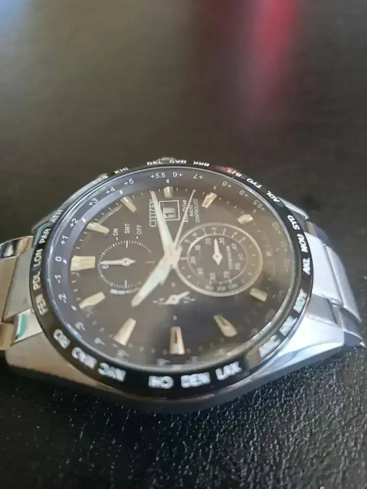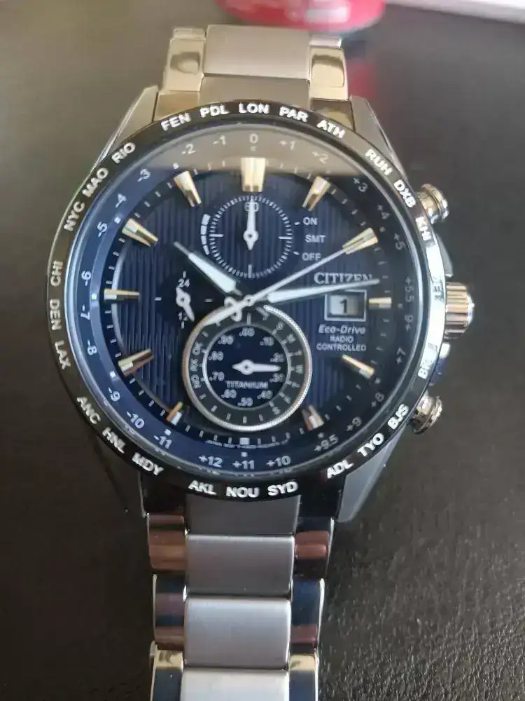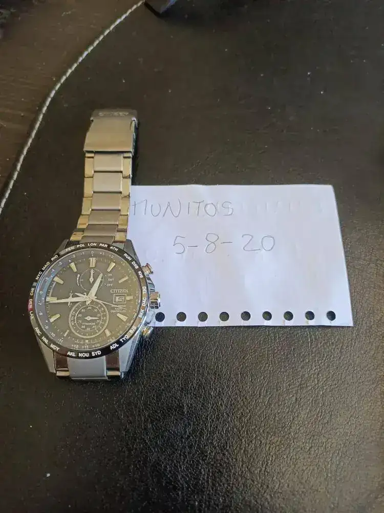 Otro Citizen que sale a la venta, en este caso es el modelo de Titanio, lleva cristal de Zafiro esta en estado impoluto, va con los eslabones sobrantes el único problema es que no se ni donde esta la caja ni la antena por eso el precio que le pongo. Reloj que precio de catalogo son 640€. No poseo la antena en mi zona no la necesito es fácil encontrar antenas a la venta por un precio de 15€.
