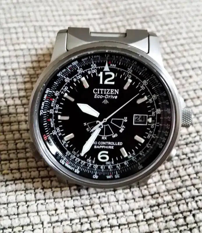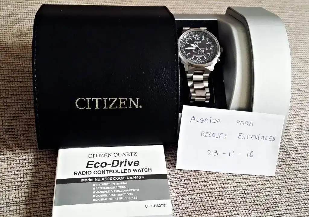 Vendo este magnifico Citizen radiocontrolado,de carga solar, muy ligero pues es de titanio, y con cristal de zafiro. Está en las magnificas condiciones que muestran las fotos. viene en un estuche original de cuero ,con sus manuales.