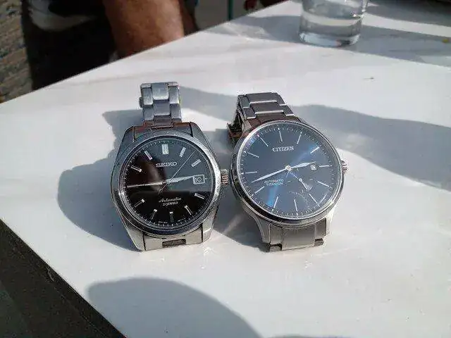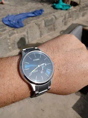 Muestro unas fotos de un Citizen titanio que que me ha impresionado gratamente. Me ha sorprendido su ligereza, dial azul, y segundero desfasado. El tamaño un poco grande para mi gusto, ahi va una foto comparadado con el SARB033.
